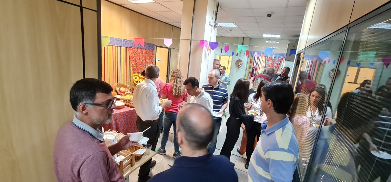 Em um ambiente festivo e acolhedor, o evento reuniu peritos criminais federais, membros associados, funcionários da administração e convidados especiais, que desfrutaram de um cardápio delicioso com pratos típicos das festas juninas.