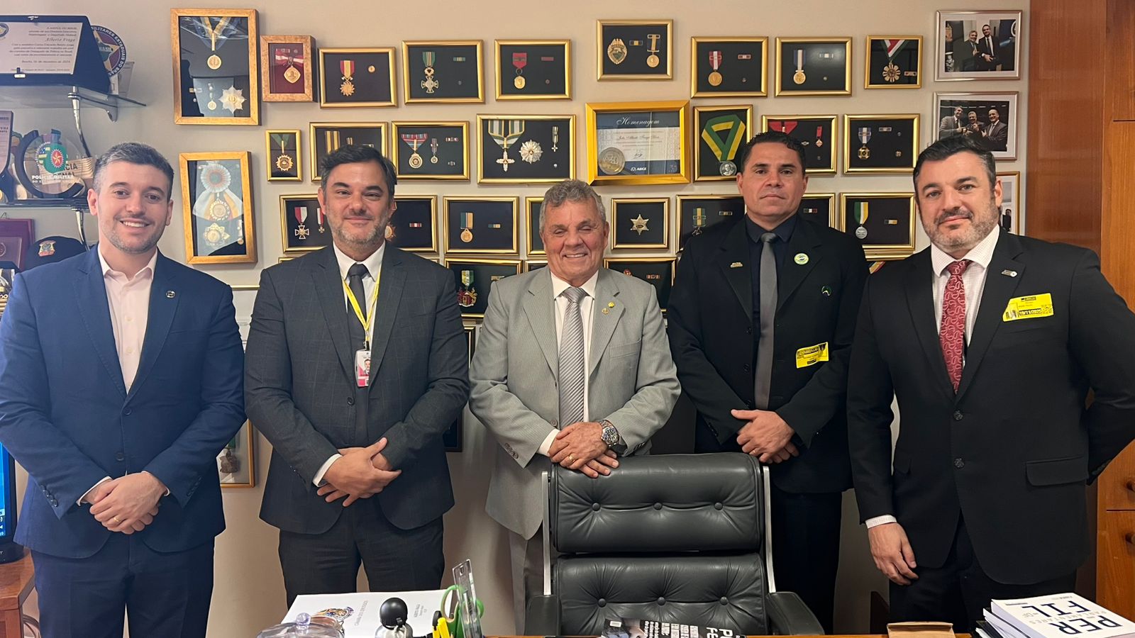 O presidente da Associação Nacional dos Peritos Criminais Federais (APCF), Marcos Camargo, o diretor executivo da entidade, Francisco Helmer, e representantes da Associação Brasileira de Criminalística (ABC) reuniram-se nesta quarta-feira (19/11) com o deputado federal Alberto Fraga (PL-DF).